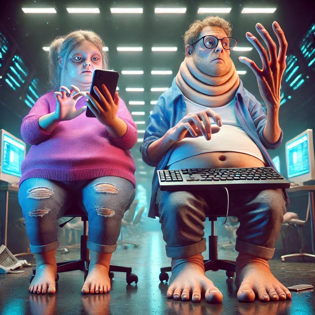 AiHa Isten ma lenézne a földre, akkor ilyen embert teremtene. (Sajnos az AI sem tudta leképezni rendesen) Rövid lábú, mert az autóból könnyű vele kiugrani, pókhasú, a kezein 2 hosszú ujjakkal, hogy könnyen nyomja a klaviatúrát, és a telefont.